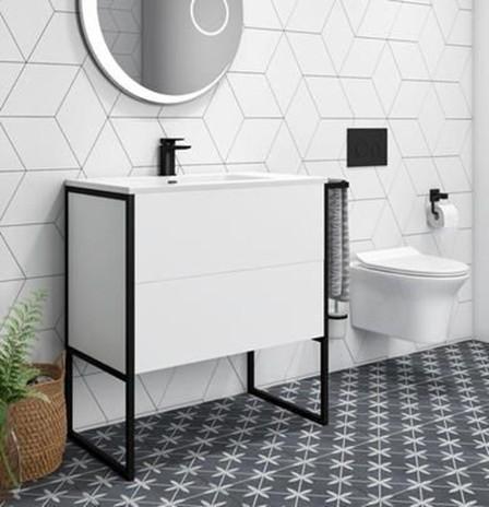 Industrial Loft Black Steel Bathroom Vanity Cabinet Unit Sink Basin 15mm MDF with paint Aluminium frame Soft closing New design Freestanding Vanity2025-12-10v22