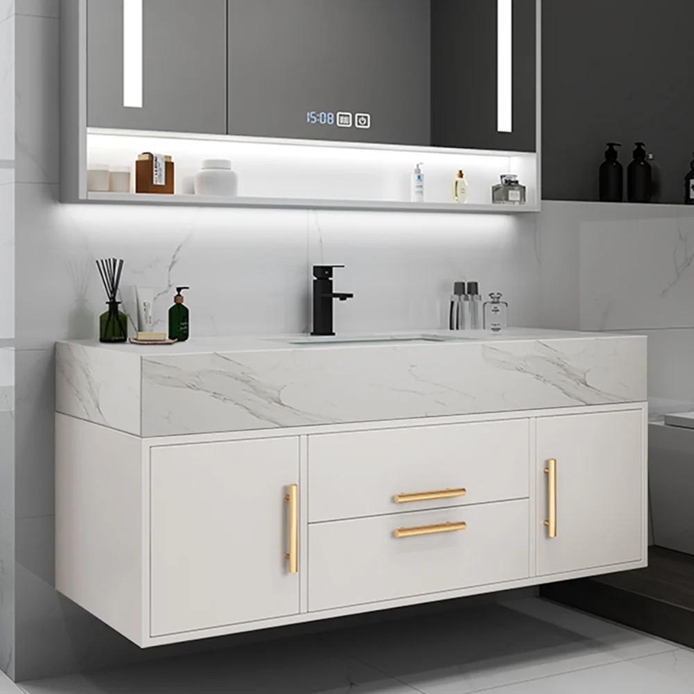 Modern 39″ Floating Black Bathroom Vanity Stone Top Wall Mounted Bathroom Cabinet