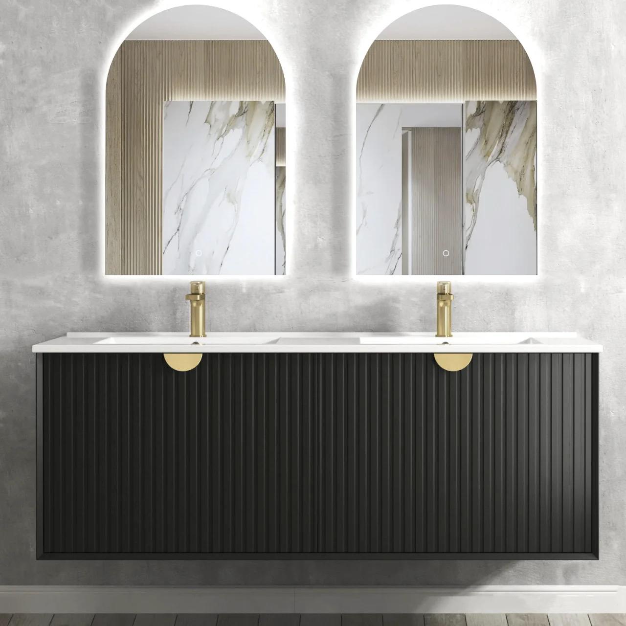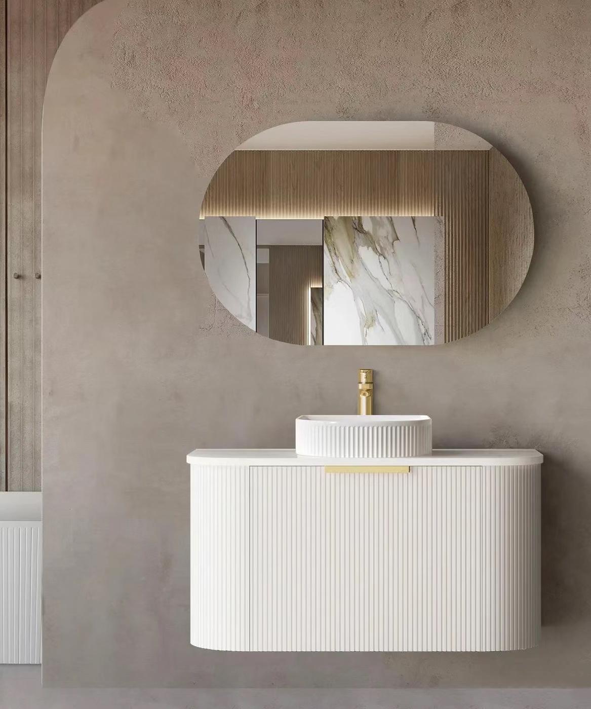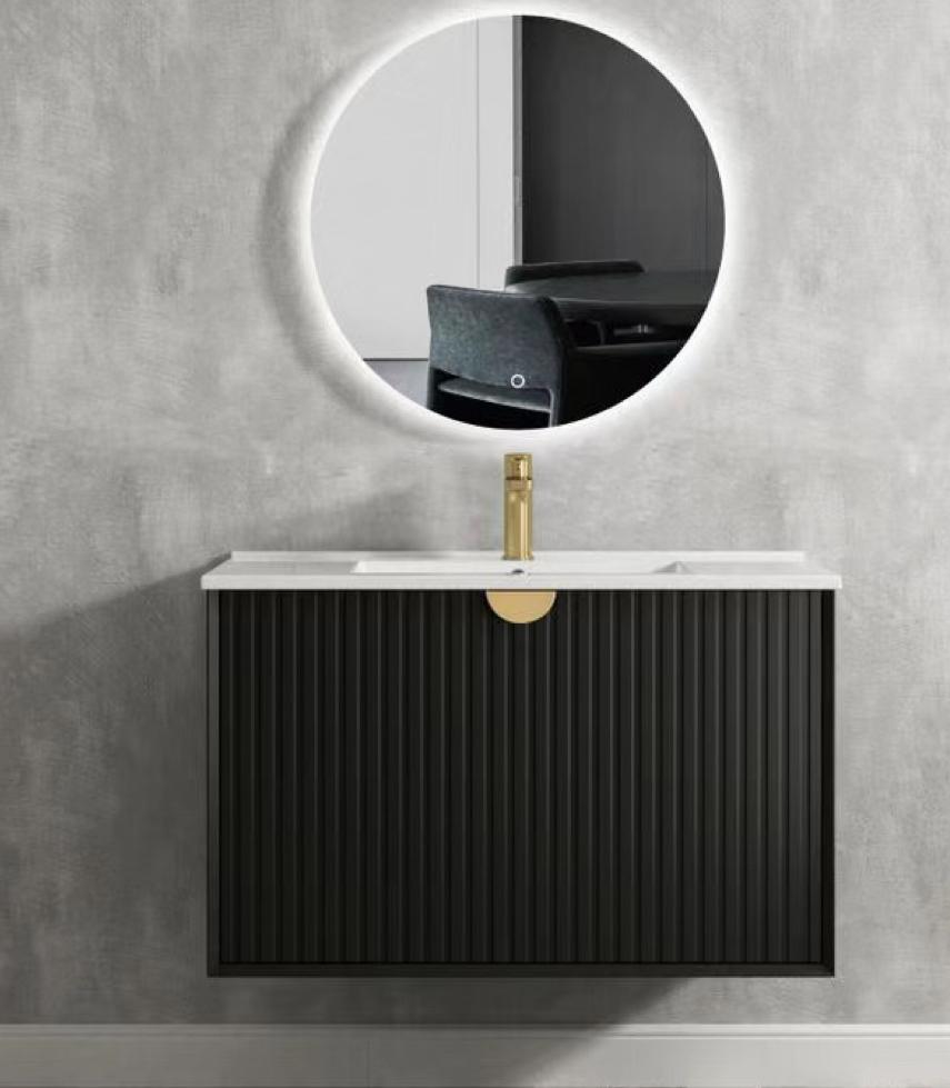 PVC bathroom cabinet with groove design top ceramic bsain and LED mirror 15mm PVC with paint outside with groove design TWo drawers/four drawers with soft closing TOP ceramic basin Modern design Wall Mounted Vanity2025-12-10v22