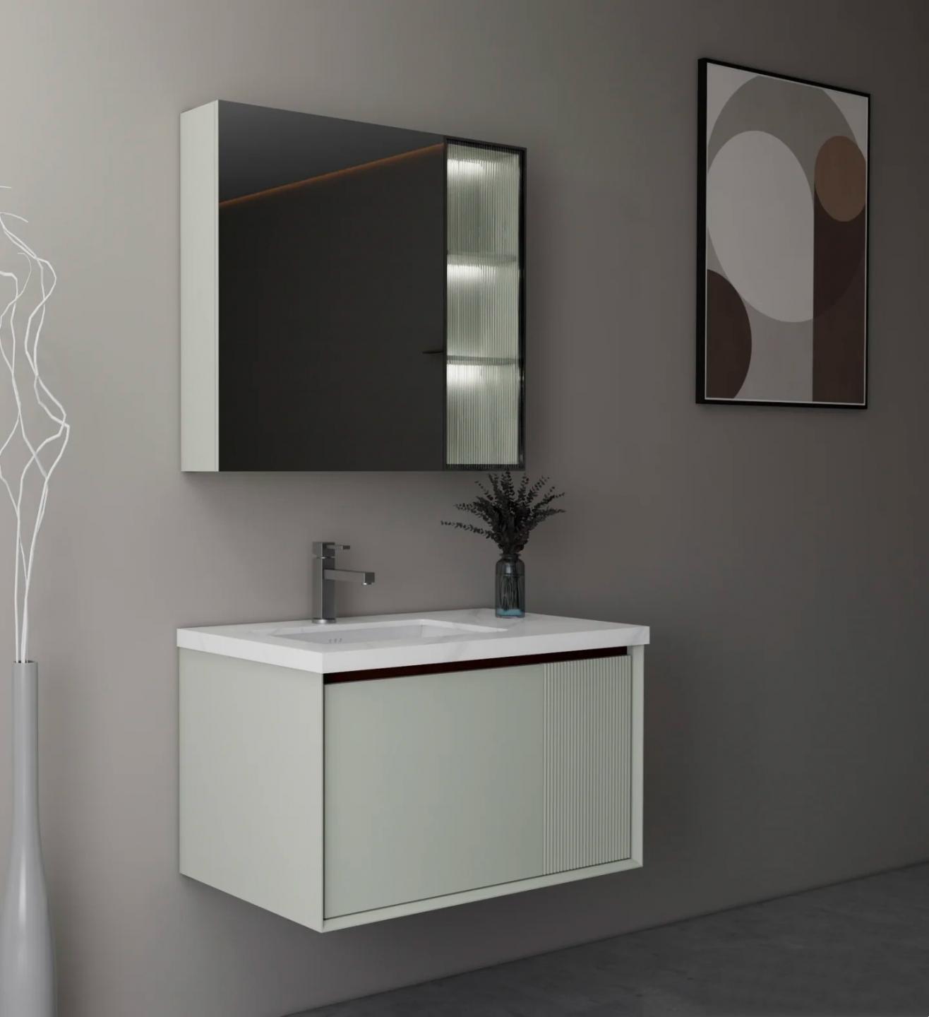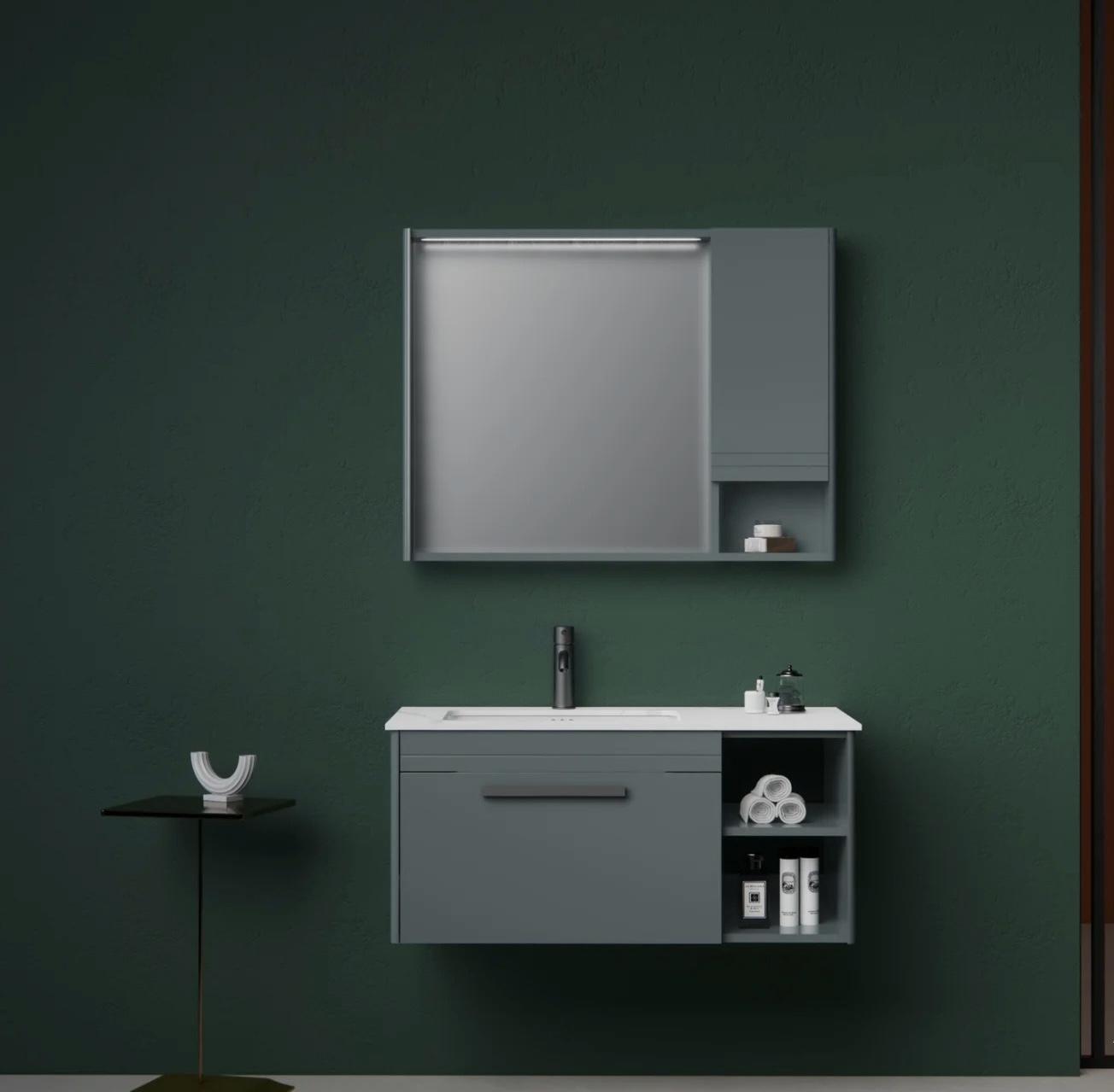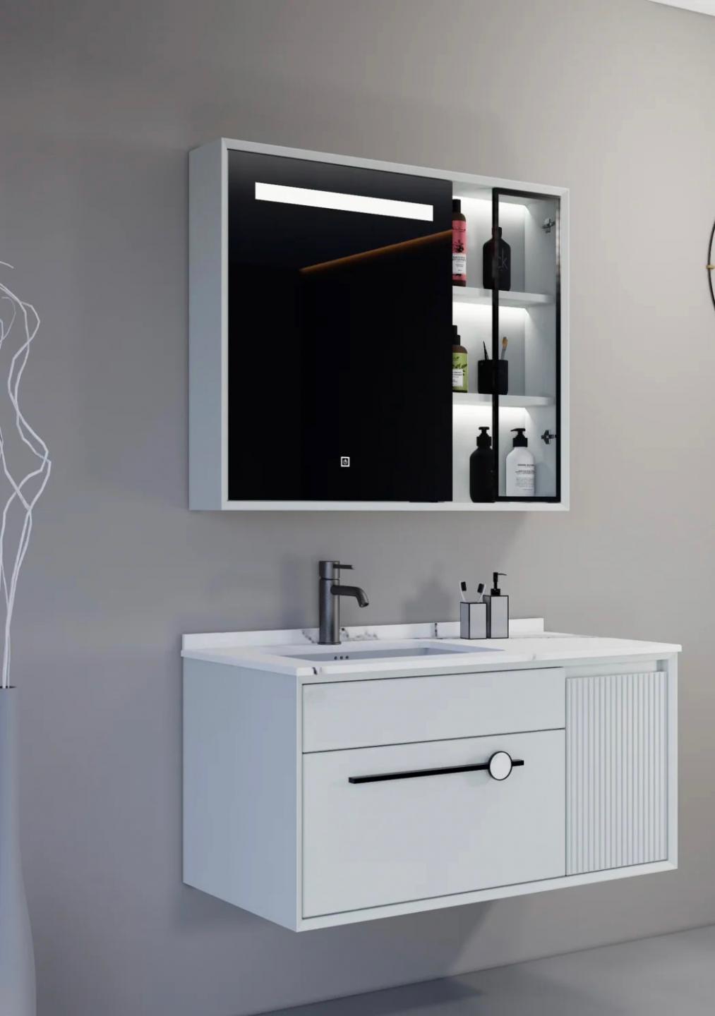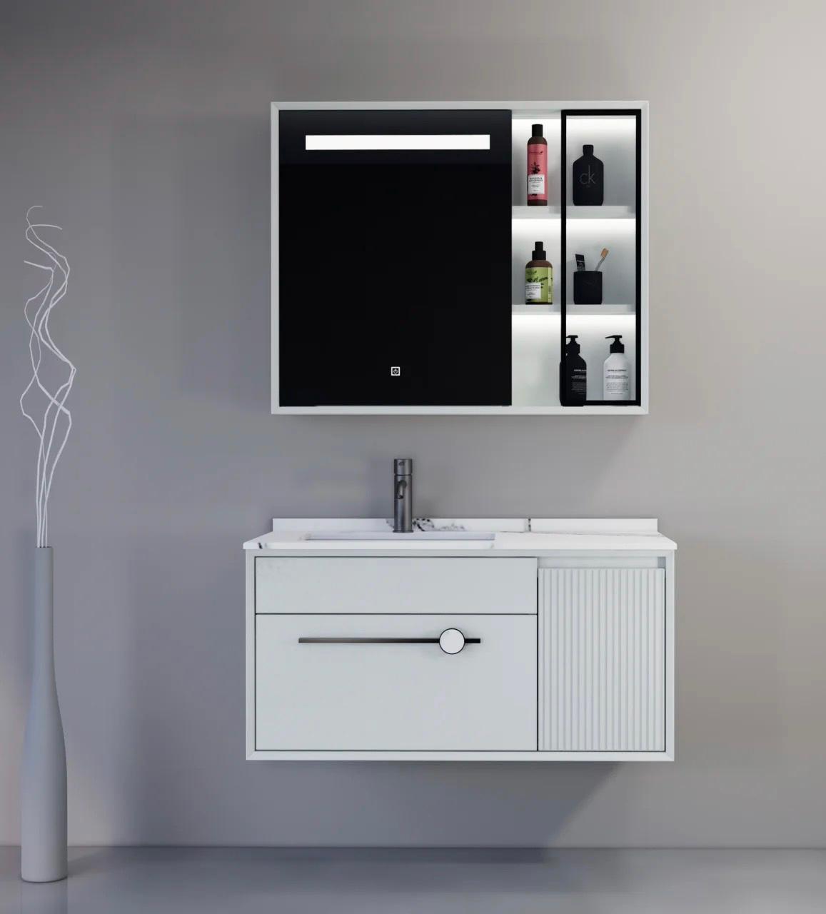 PVC modern design with paint LED mirror cabinet 15mm PVC with paint Soft closing Modern design Wall Mounted Vanity2025-12-10v22